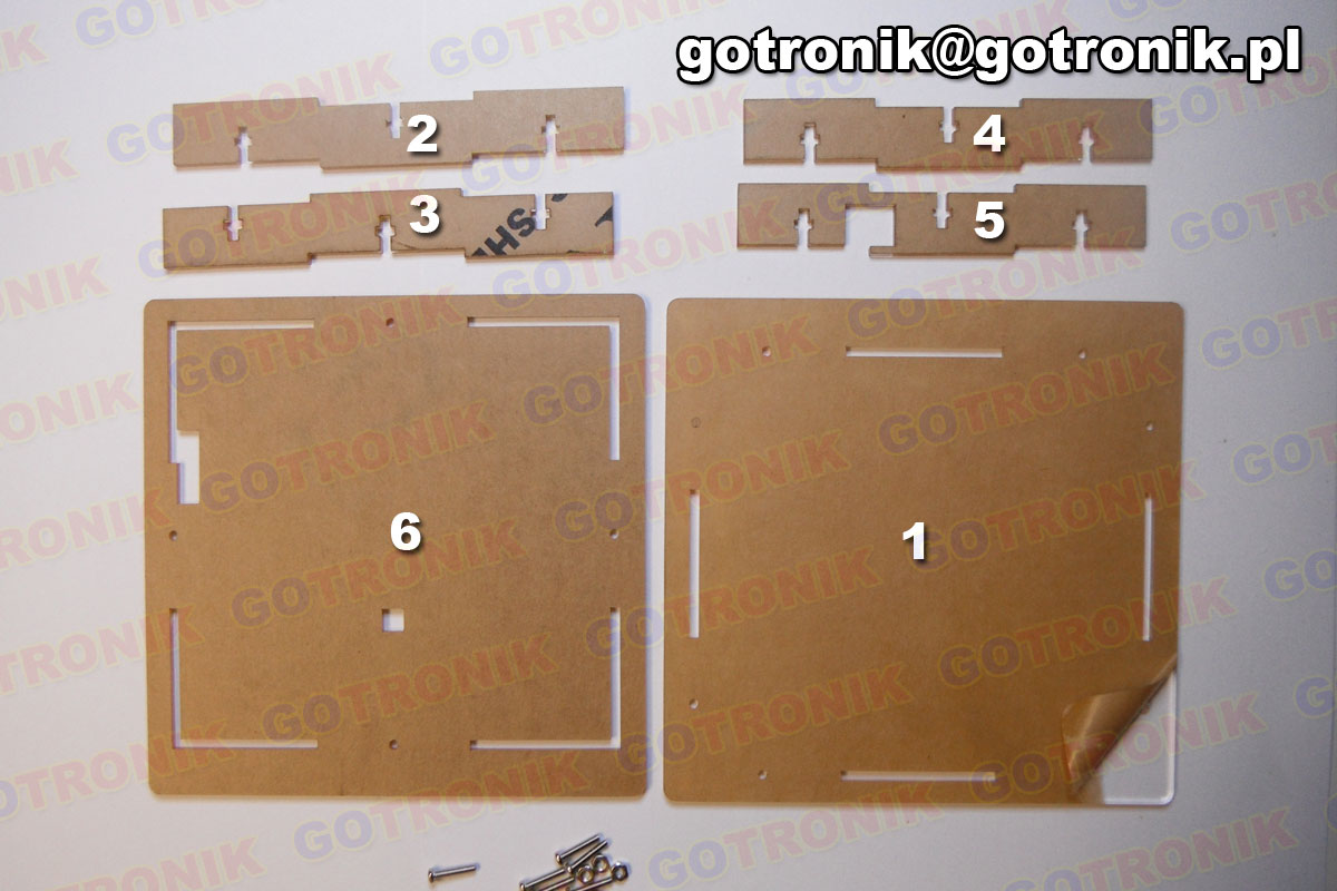Przygotujemy teraz obudowę. Rozłóż jej części i przyjrzyj się numeracji. Następnie ściągnij papierową ochronną osłonę z elementów obudowy.