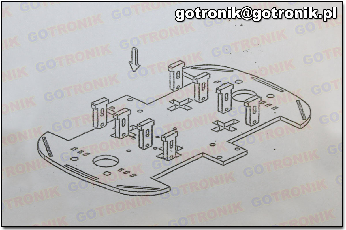 Do jednej płytki podwozia wkładamy 8 elementów, do których później przykręcimy silniki.